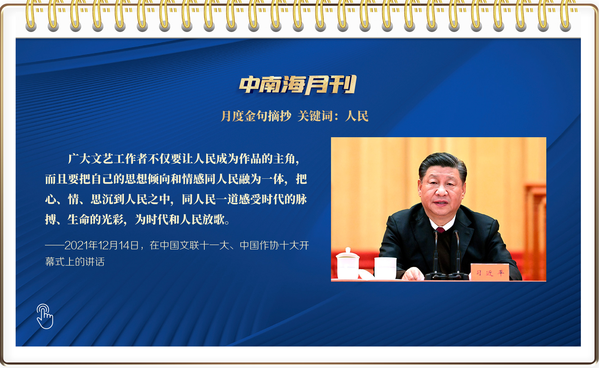 2021年12月14日,文藝界也迎來了一場盛會——中國文學藝術界聯合會第十一次全國代表大會、中國作家協會第十次全國代表大會在北京人民大會堂開幕。習近平總書記出席大會開幕式并發表重要講話,他與廣大文藝工作者暢談“心里話”,鼓勵他們以強烈的歷史主動精神,積極投身社會主義文化強國建設。