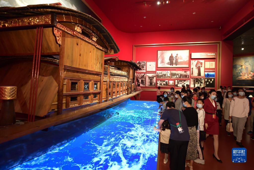 觀眾在中國共產黨歷史展覽館參觀(2021年10月1日攝)。新華社記者 李賀 攝
