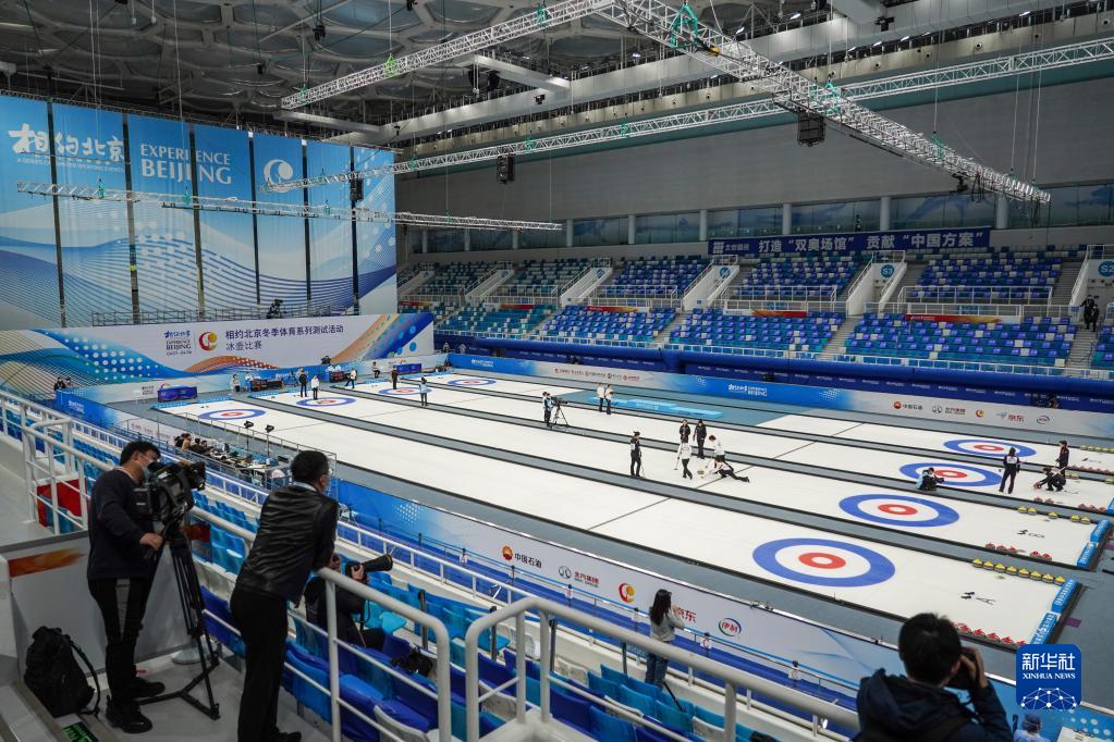 2021年4月6日,運動員在冰壺項目測試活動中。2022年北京冬奧會將國家游泳中心“水立方”改造為“冰立方”,用作冰壺項目比賽場館,有效減少建設投資,更讓夏奧場館煥然新生,拓展多元賽后經營能力。新華社記者 彭子洋 攝