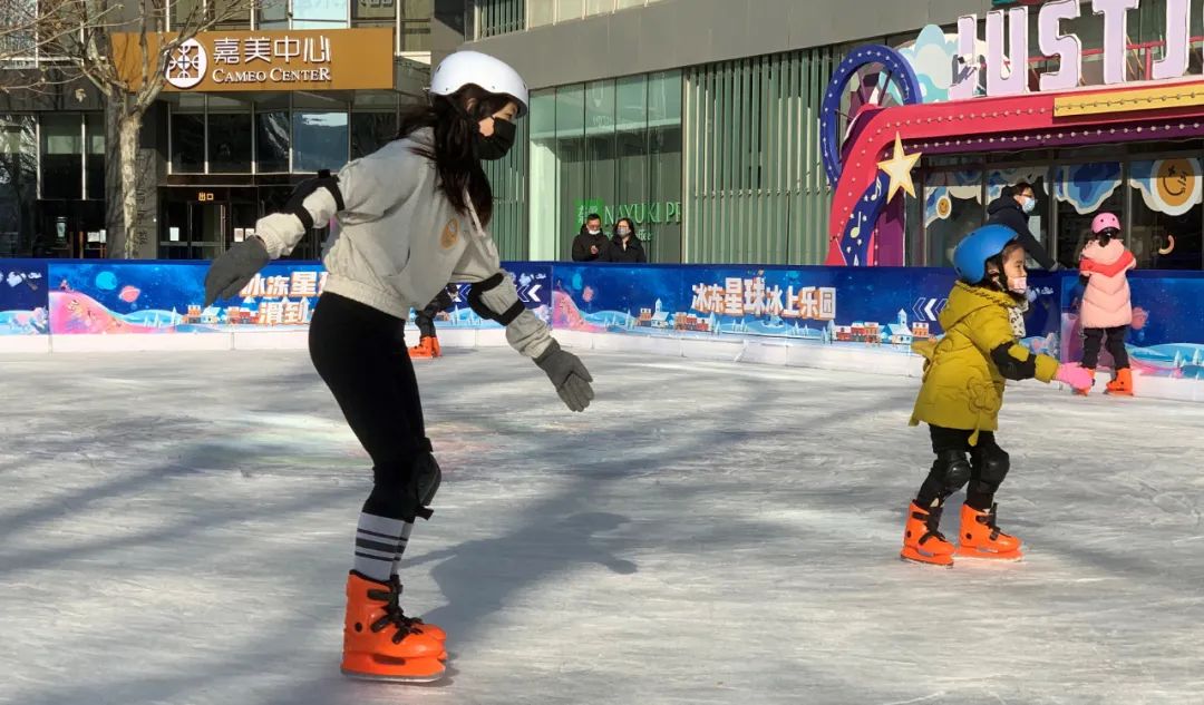 2022年1月1日,市民在北京望京一處室外冰場(chǎng)活動(dòng)(手機(jī)照片)。新華社記者 王艷剛 攝
