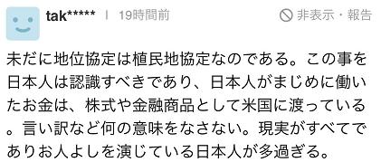 還有人說:“直至現(xiàn)在,日美地位協(xié)定還是殖民地協(xié)定。日本人應(yīng)該明白這件事……”
