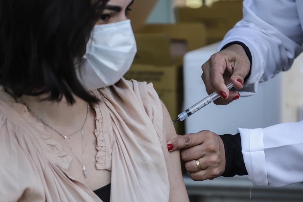 2021年7月25日,巴西圣保羅市一名女子接種新冠疫苗。(新華社發)