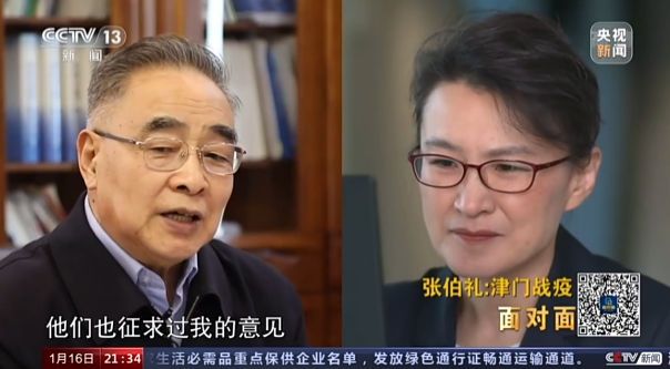 張伯禮:這個問題很多人都問我,但是從現在天津整個發展情況來看,現在的目標爭取短時間內社會面清零,封控區管控區外不再發現新的病人,不再發現新的感染者,這是第一步。第二步就是在封控區里管控區里不再出現新的病人,隔離點里不再出現新的,這個基本疫情就堵住了,后面就是治療的問題了。我覺得這場仗打下來以后,進展比我預想的要好要快,同時效果也好,要照這樣下來,我估計再過幾天就可以達到社會面清零,再過幾天我估計有可能就達到新發病人不再有了。