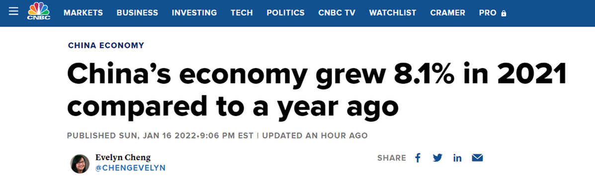 中國(guó)經(jīng)濟(jì)2021年“成績(jī)單”揭曉 外媒:連續(xù)第二年超預(yù)期增長(zhǎng)