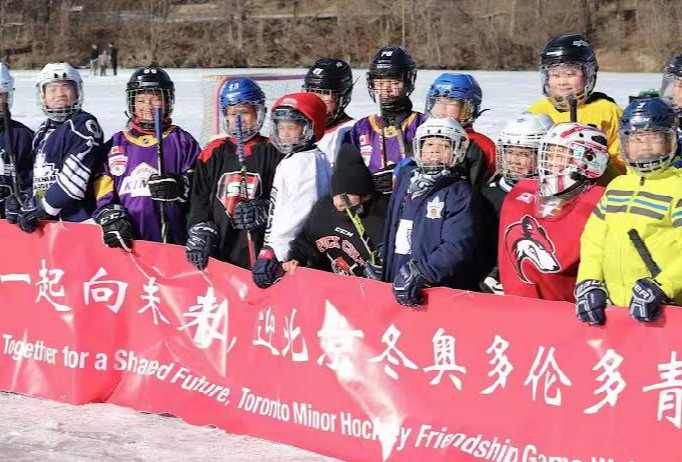 加拿大多倫多舉辦"冰娃弄春迎冬奧"湖面冰球交流活動