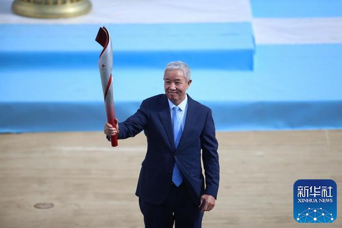 2021年10月19日,北京冬奧會(huì)火種在希臘首都雅典的帕納辛奈科體育場(chǎng),由希臘奧委會(huì)交接給北京冬奧組委。北京冬奧組委特別代表、北京冬奧組委副主席于再清在交接儀式上展示北京冬奧會(huì)火炬。新華社記者鄭煥松攝