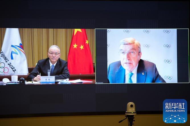 1月15日,中共中央政治局委員、北京市委書記、北京冬奧組委主席蔡奇視頻會(huì)見了國(guó)際奧委會(huì)主席托馬斯·巴赫。新華社記者陳鐘昊攝