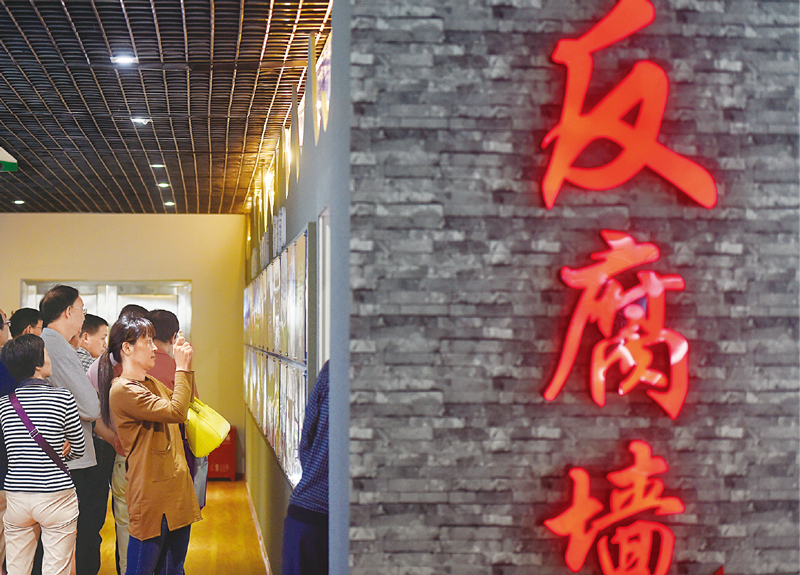 辦好中國的事情,關鍵在黨。黨的十八大以來,以習近平同志為核心的黨中央毫不動搖堅持和完善黨的領導,確保黨始終成為領航中華民族偉大復興的時代先鋒、民族脊梁。圖為黨員干部在福建省福州市閩清縣反腐倡廉警示教育中心接受警示教育。 新華社記者 宋為偉/攝