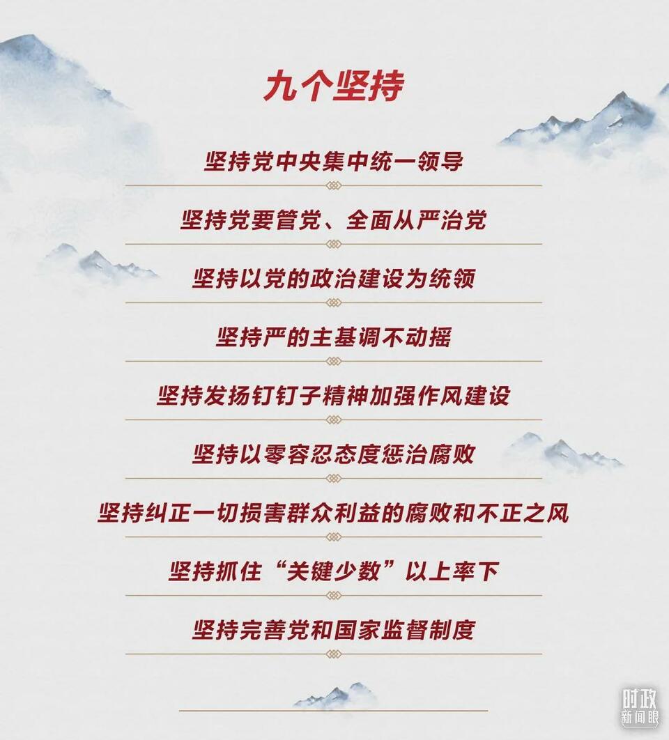 習近平總書記在會上還指出,黨的十八大以來,我們深入推進管黨治黨實踐創(chuàng)新、理論創(chuàng)新、制度創(chuàng)新,對建設(shè)什么樣的長期執(zhí)政的馬克思主義政黨、怎樣建設(shè)長期執(zhí)政的馬克思主義政黨的規(guī)律性認識達到新的高度。這就是“九個堅持”。
