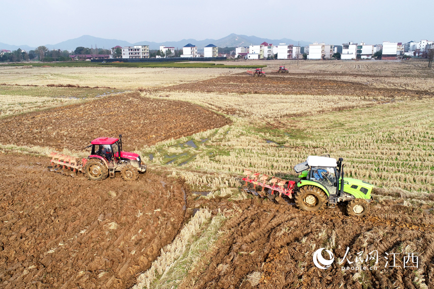 1月19日,江西省撫州市東鄉(xiāng)區(qū)小璜鎮(zhèn)小璜村的農(nóng)田里,旋轉(zhuǎn)犁正在對(duì)農(nóng)田進(jìn)行機(jī)械化作業(yè)。隨著氣溫回升,江西省撫州市東鄉(xiāng)區(qū)各地紛紛拉開(kāi)春耕備耕序幕,田間地頭呈現(xiàn)出一派忙碌景象。
