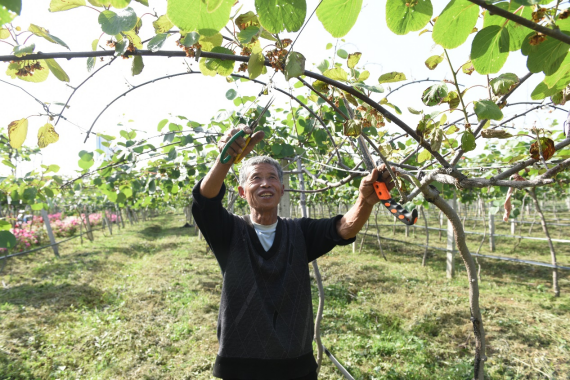 鄒莊村民在京都果園內進行田間管護。 淅川縣委宣傳部供圖