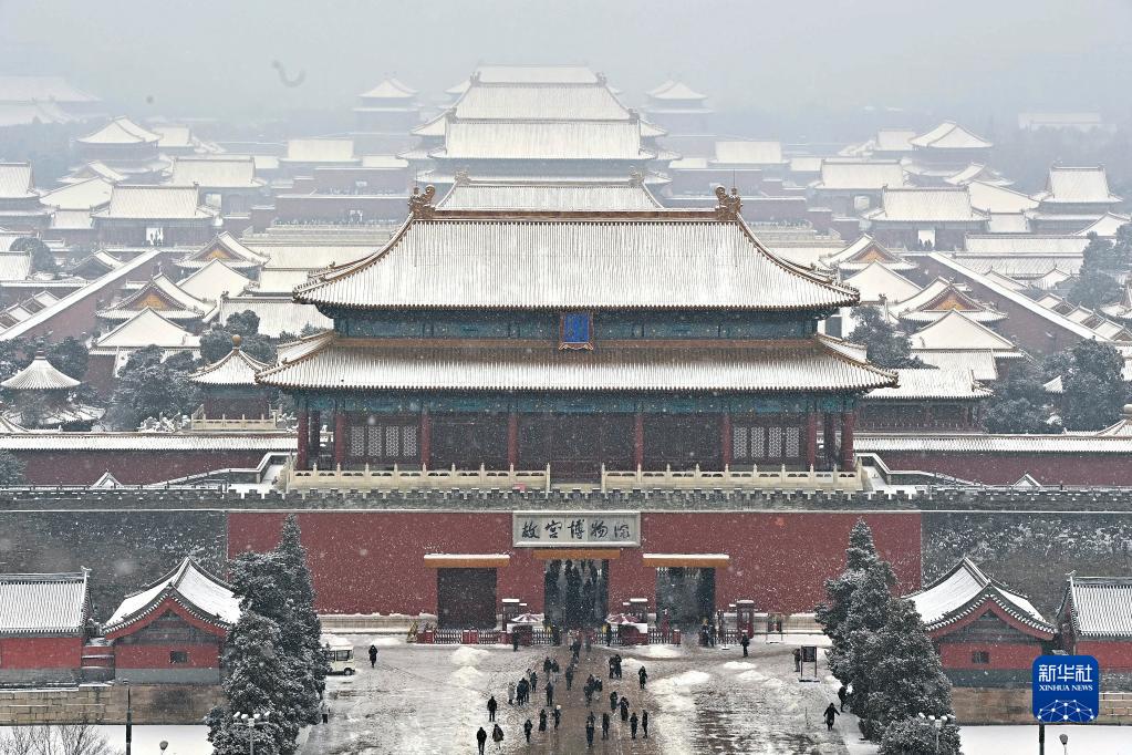 這是2022年1月22日從北京景山公園拍攝的故宮雪景。新華社記者 李鑫 攝