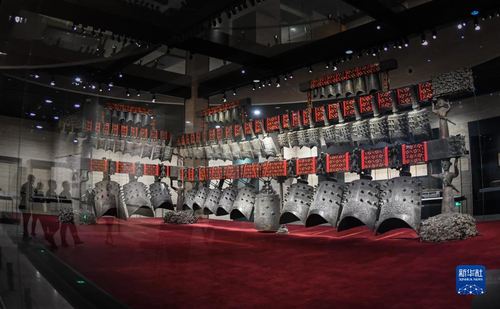 2021年12月20日,湖北省博物館新館開館。這是參觀者觀賞曾侯乙編鐘。新華社記者 程敏 攝