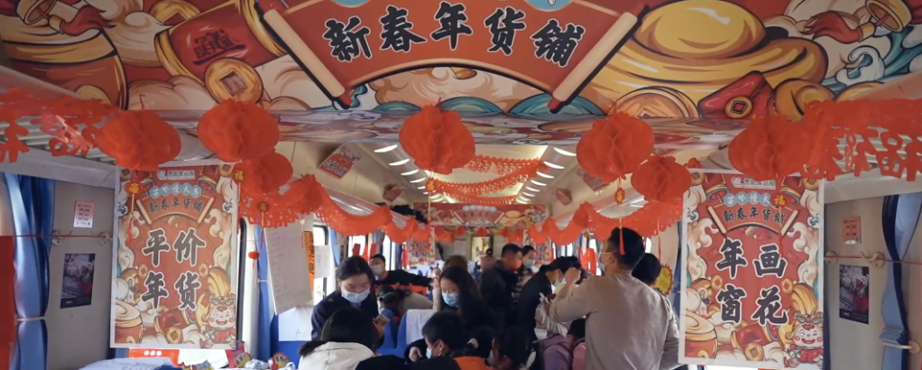 為方便少數(shù)民族地區(qū)群眾置辦年貨,2019年以來(lái),每年春運(yùn)伊始到除夕前,這趟列車會(huì)視當(dāng)日客流情況,決定是否開設(shè)“新春年貨鋪”,平價(jià)銷售年貨。