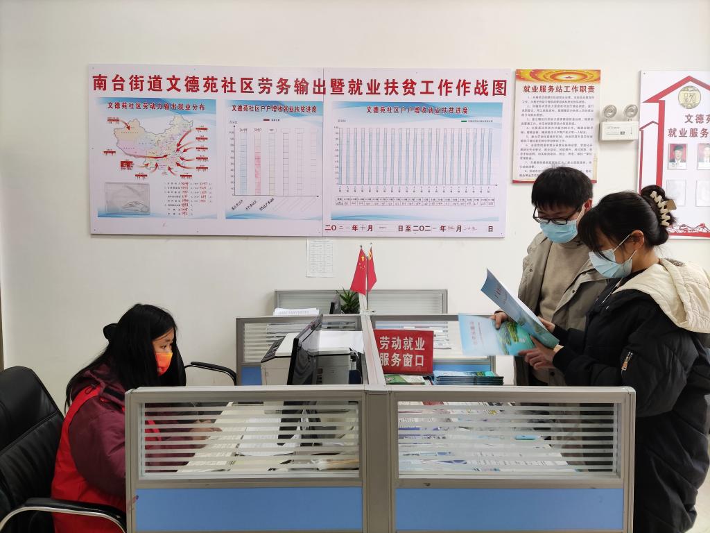 記者在文德苑社區看到,社區設立就業幫扶工作站,門口廣播輪流播放招聘信息,展板上寫著公司簡介、招聘崗位、福利待遇等內容。社區黨總支書記吳道興說:“脫貧不脫幫扶,我們努力為群眾推薦崗位。”
