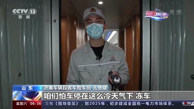 濟南車輛段客車檢車員 孔慧斌:第二天旅客上車怕冷,需要先把溫度調上來,讓旅客能夠有更優質,更舒適的乘車環境。