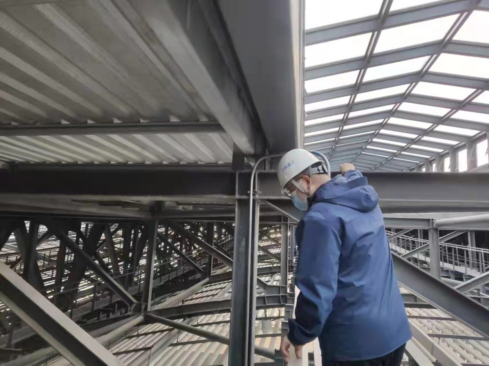 李碩在檢查清河站候車廳吊頂(受訪者供圖)