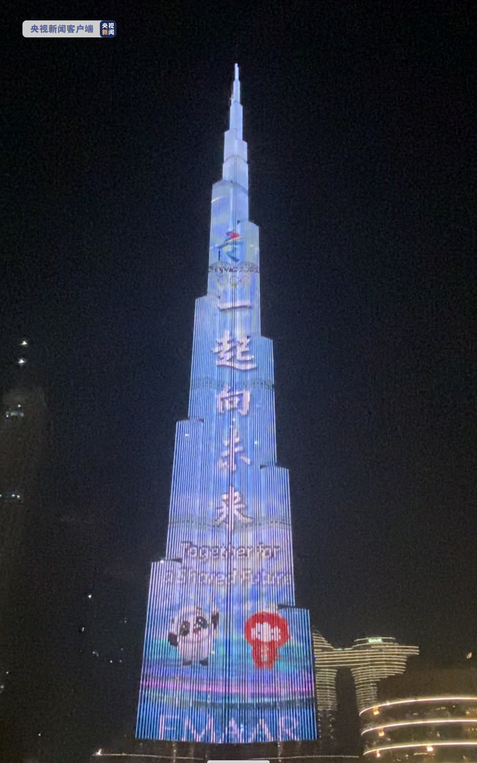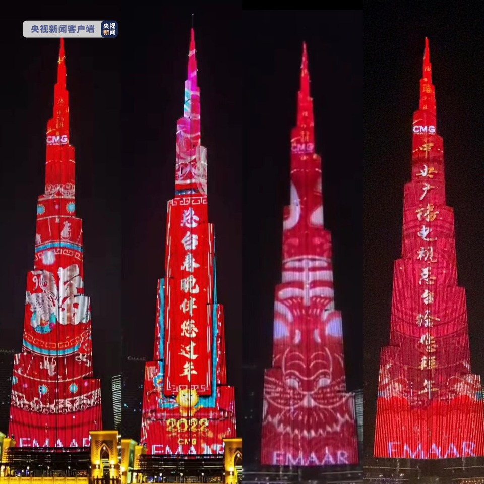 中國(guó)農(nóng)歷大年初一,當(dāng)?shù)貢r(shí)間2月1日20時(shí)10分,由中央廣播電視總臺(tái)制作的“一起向未來(lái)”主題燈光秀在迪拜知名地標(biāo)、世界最高建筑哈利法塔驚艷亮相,向全球華人送上新春祝福的同時(shí),邀世界一起迎冬奧、慶新春。