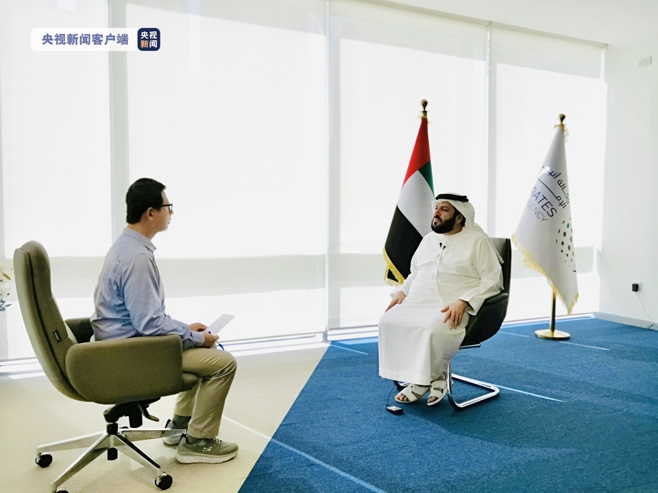 △阿聯(lián)酋國(guó)家通訊社社長(zhǎng)穆罕默德·杰拉勒·拉伊斯接受總臺(tái)記者采訪