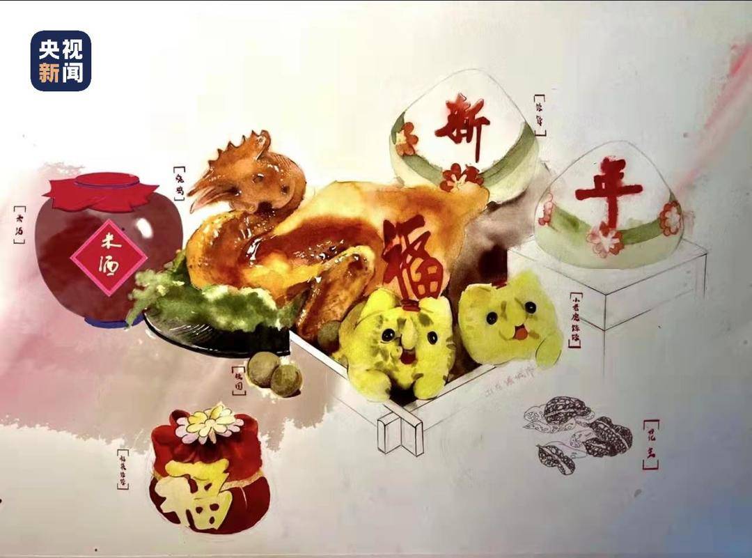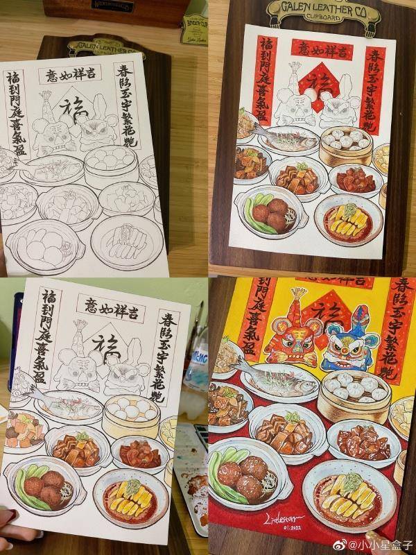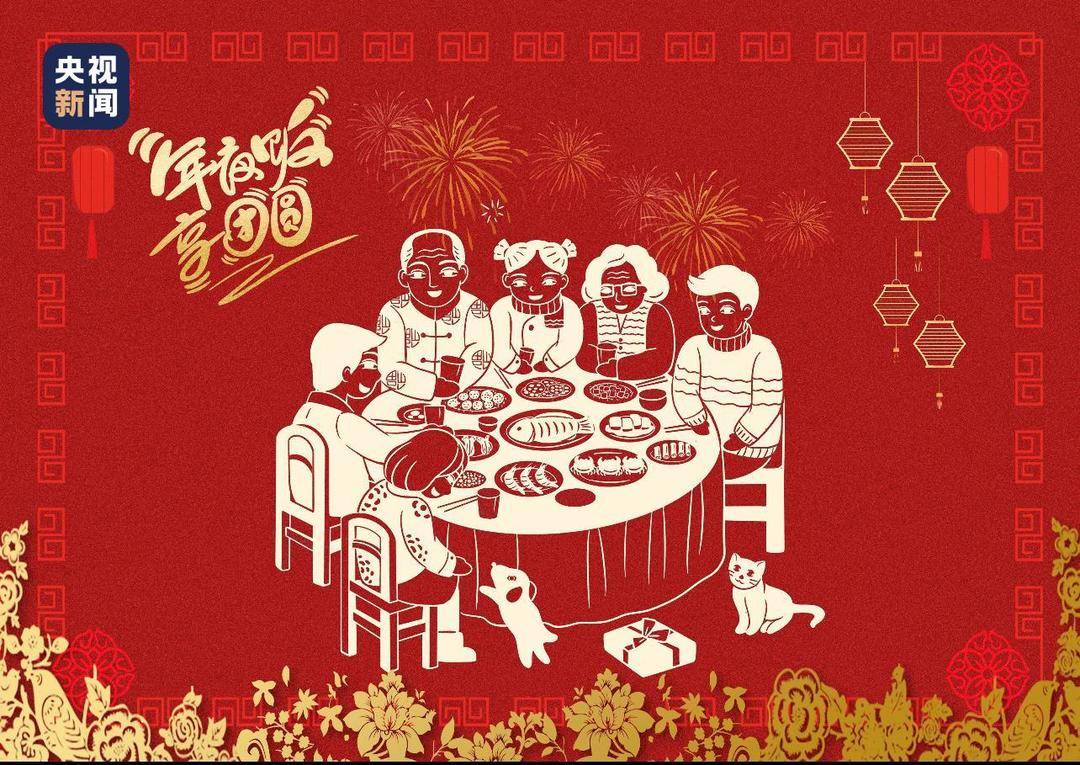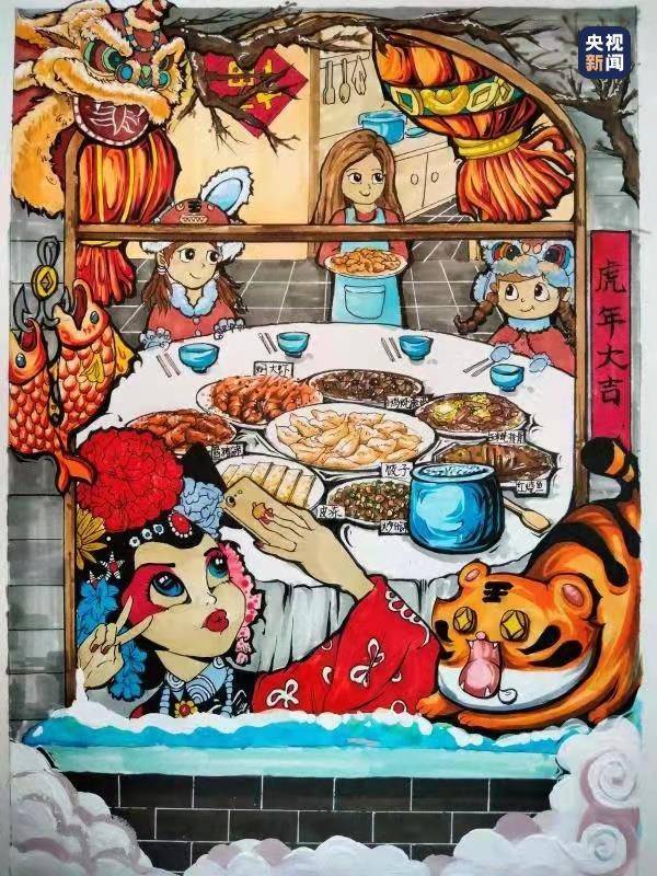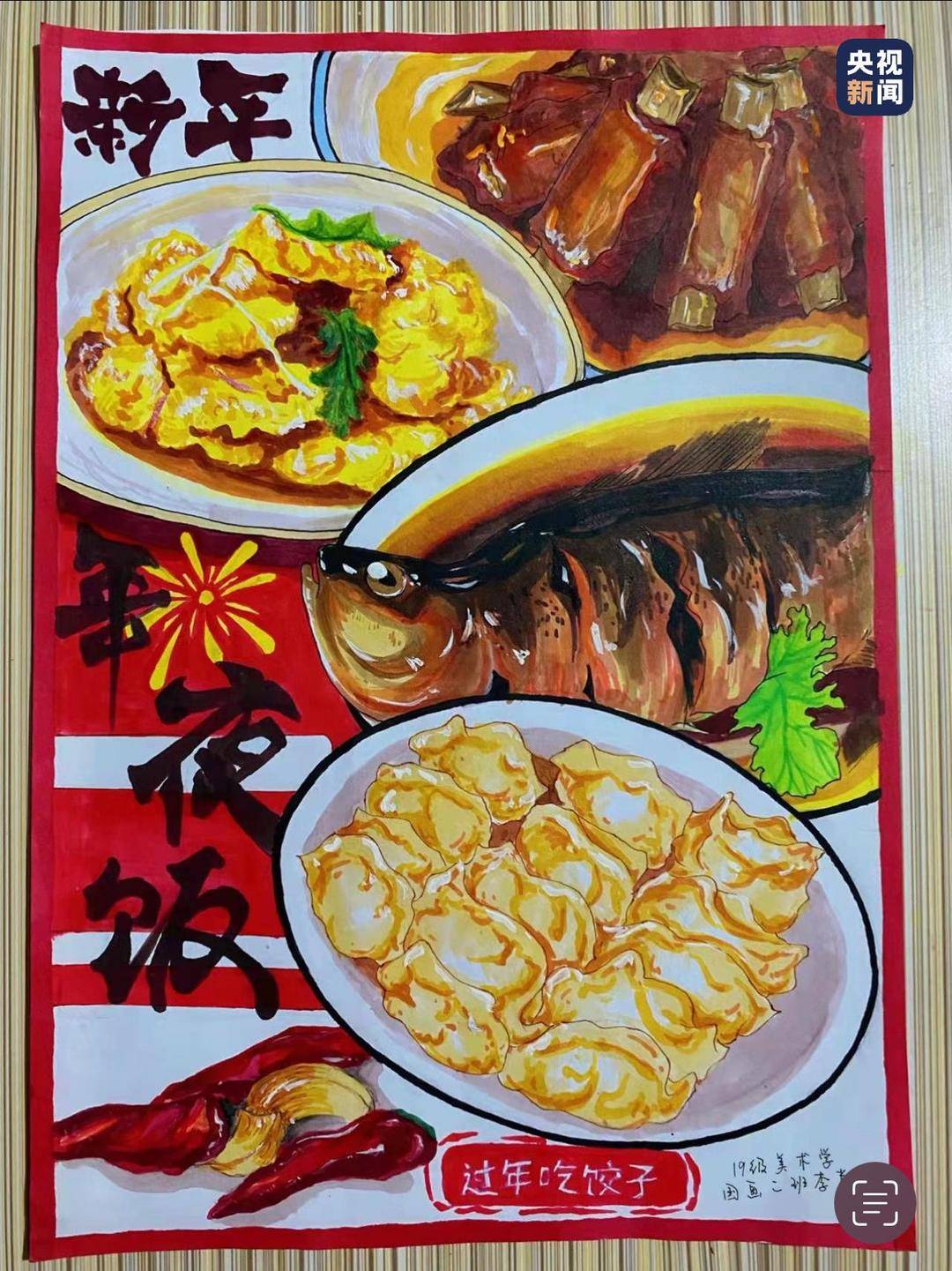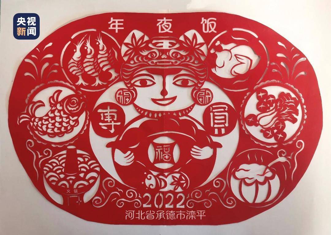 還有同學(xué)用剪紙的形式曬出家鄉(xiāng)的年夜飯