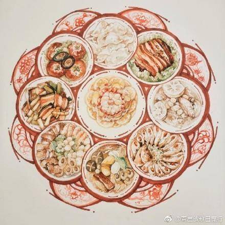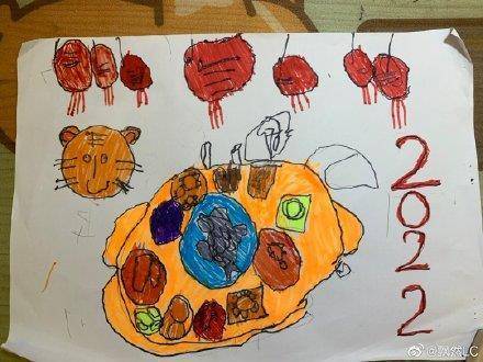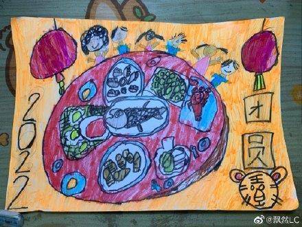 還有一些網(wǎng)友曬出了自家寶寶畫的年夜飯