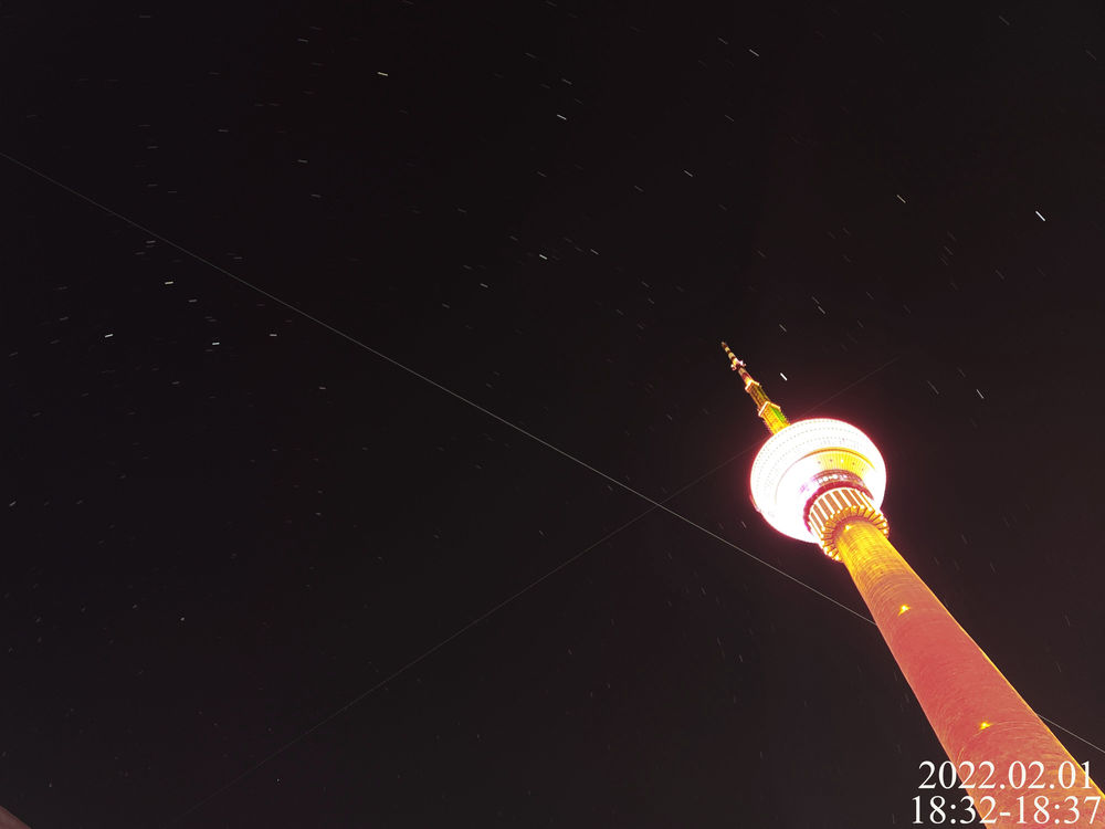 ↑除夕夜,中國宮過境北京上空。朱進 攝