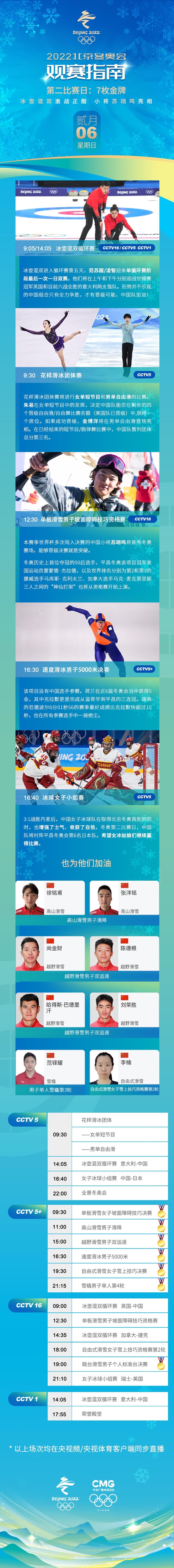 2月6日觀賽指南:蘇翊鳴亮相 花滑團(tuán)體賽繼續(xù)進(jìn)行