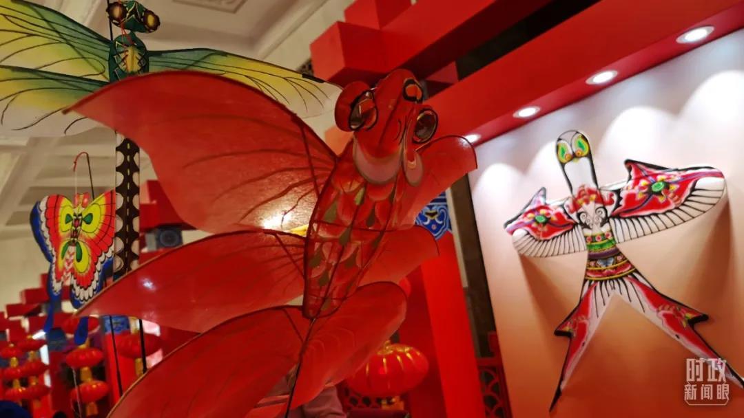 年畫、春聯、剪紙、風箏、面塑、中國結、京劇臉譜、民樂合奏……這些從中國土地上長出來的非遺作品,匠心獨運、光彩照人,讓短短數十米的廊道化身為精華版的中國“廟會”。