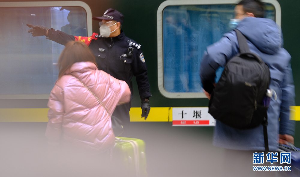“請大家看好隨身物品,依次上車,不要擁擠。”2月7日是節后返程客流高峰時刻,當天11:20許,在湖北十堰火車站站臺,一位聲音洪亮、神采奕奕的乘警來回走在列車旁,一邊維護乘車秩序,一邊提醒乘客有序上車。