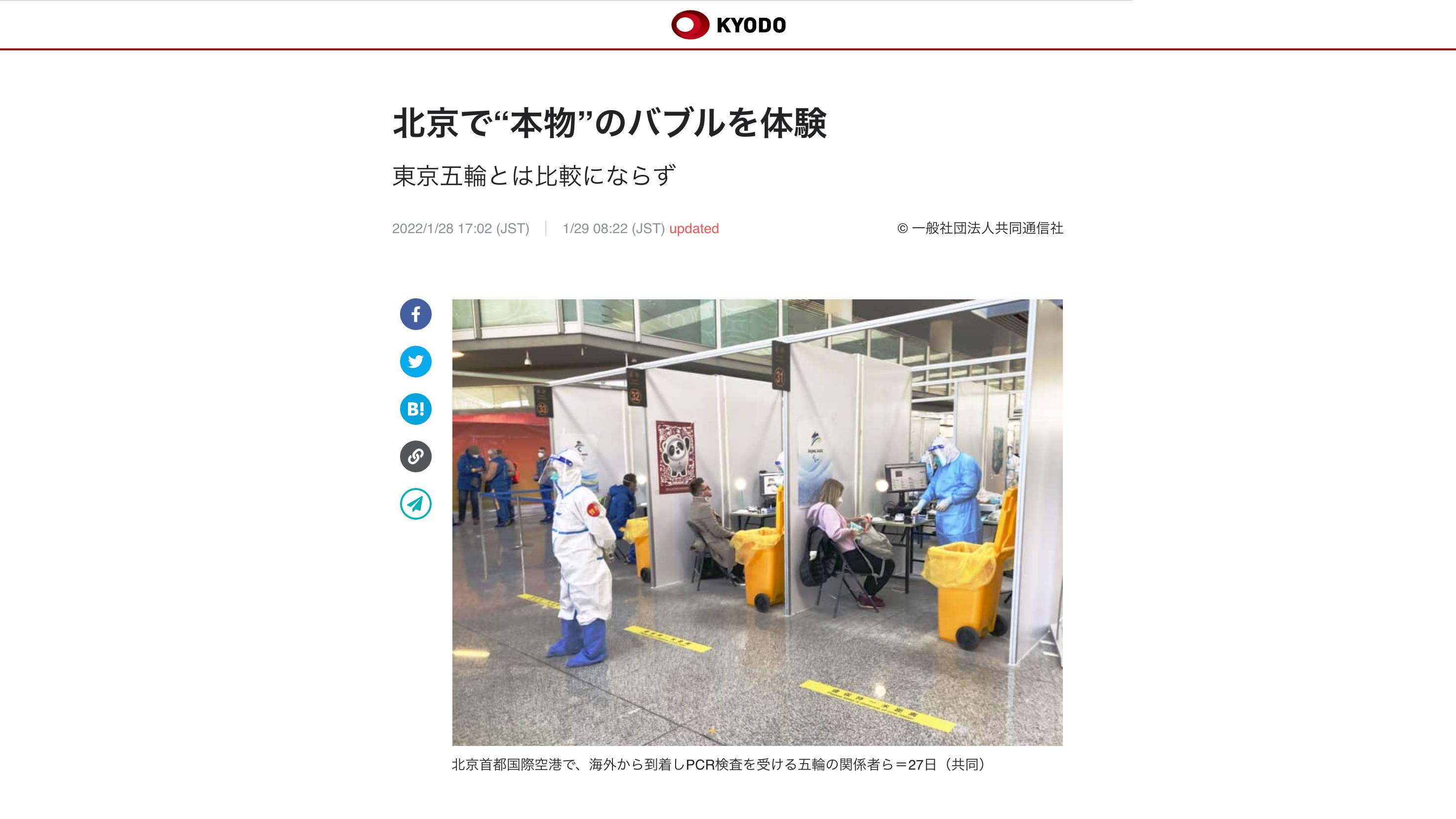 一位來自日本共同社的記者經(jīng)過親測(cè)寫下報(bào)道:“北京冬奧的防疫‘泡泡’才是真正的‘泡泡’!”