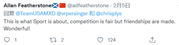 中國(guó)選手凌智6日透露,當(dāng)天回到更衣室,就已經(jīng)收到美國(guó)隊(duì)回贈(zèng)的徽章。他說:“冰壺就是一個(gè)社交性的運(yùn)動(dòng),我們運(yùn)動(dòng)員之間都是非常友好的關(guān)系!