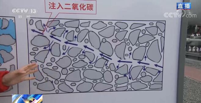 總臺記者 魯子奇:鉆進地下的二氧化碳發(fā)揮兩個作用:一是進入巖石縫隙,把里面的油給“擠出來”;二是與油混合,讓油體積膨脹,使得原油流動性更好,更容易開采出來。可以說,通過利用液態(tài)二氧化碳,原本一些難以開采的油層也被我們成功“解鎖”。