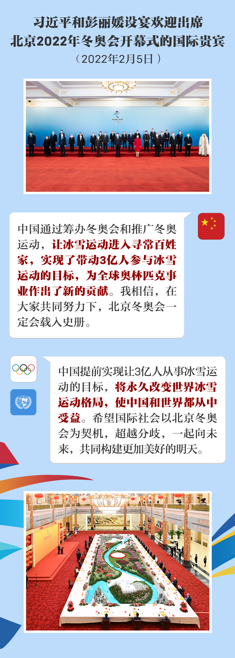 習近平和彭麗媛設宴歡迎出席北京2022年冬奧會開幕式的國際貴賓(2022年2月5日)