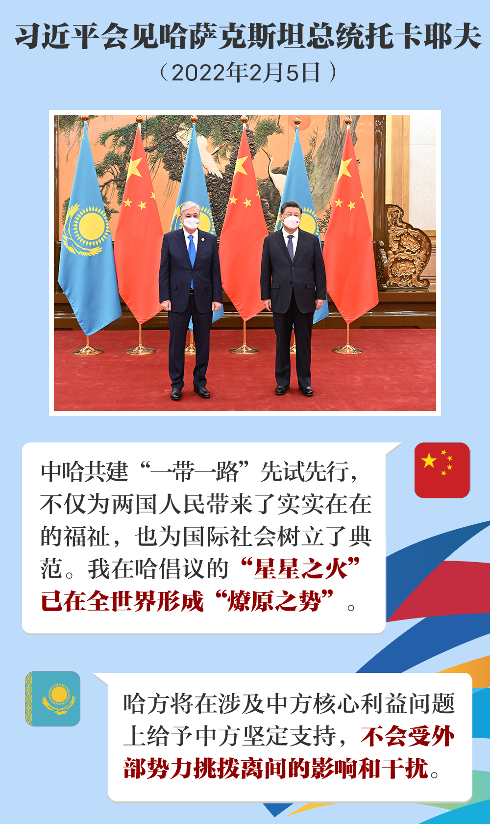 習近平會見哈薩克斯坦總統(tǒng)托卡耶夫(2022年2月5日)