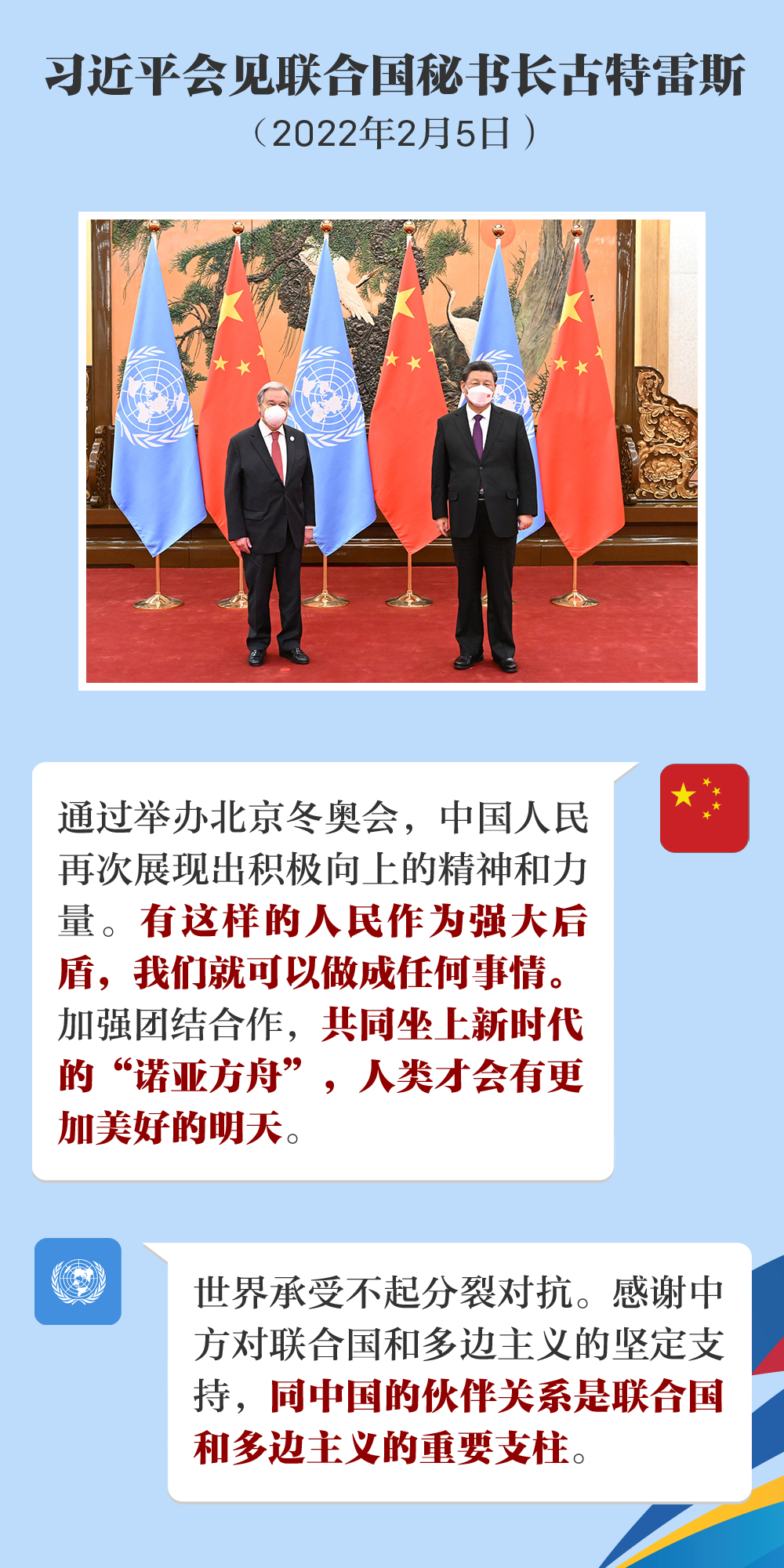 習近平會見聯(lián)合國秘書長古特雷斯(2022年2月5日)