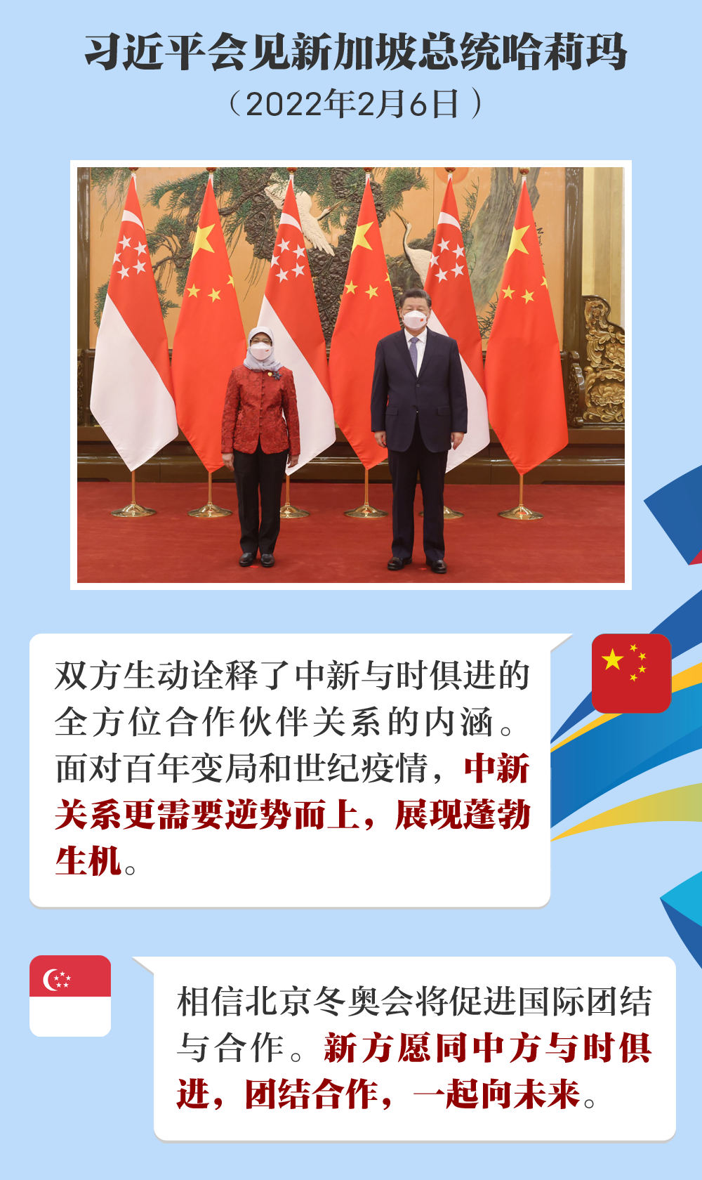 習近平會見新加坡總統(tǒng)哈莉瑪(2022年2月6日)
