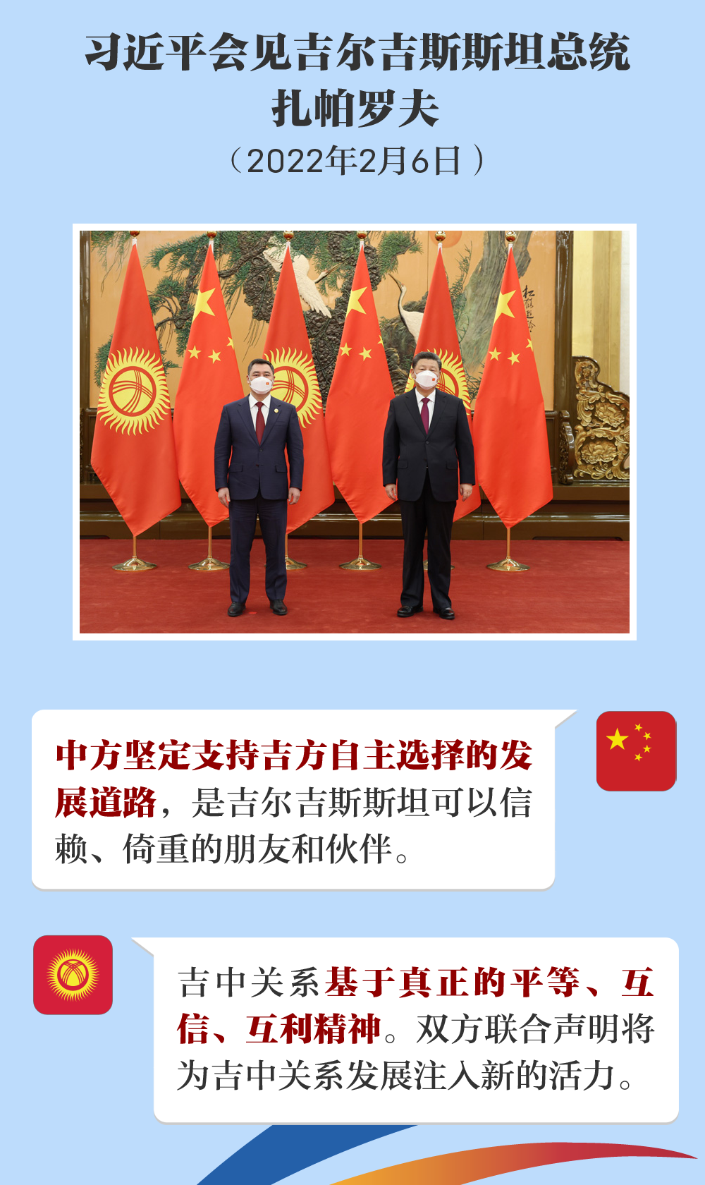 習近平會見吉爾吉斯斯坦總統(tǒng)扎帕羅夫(2022年2月6日)
