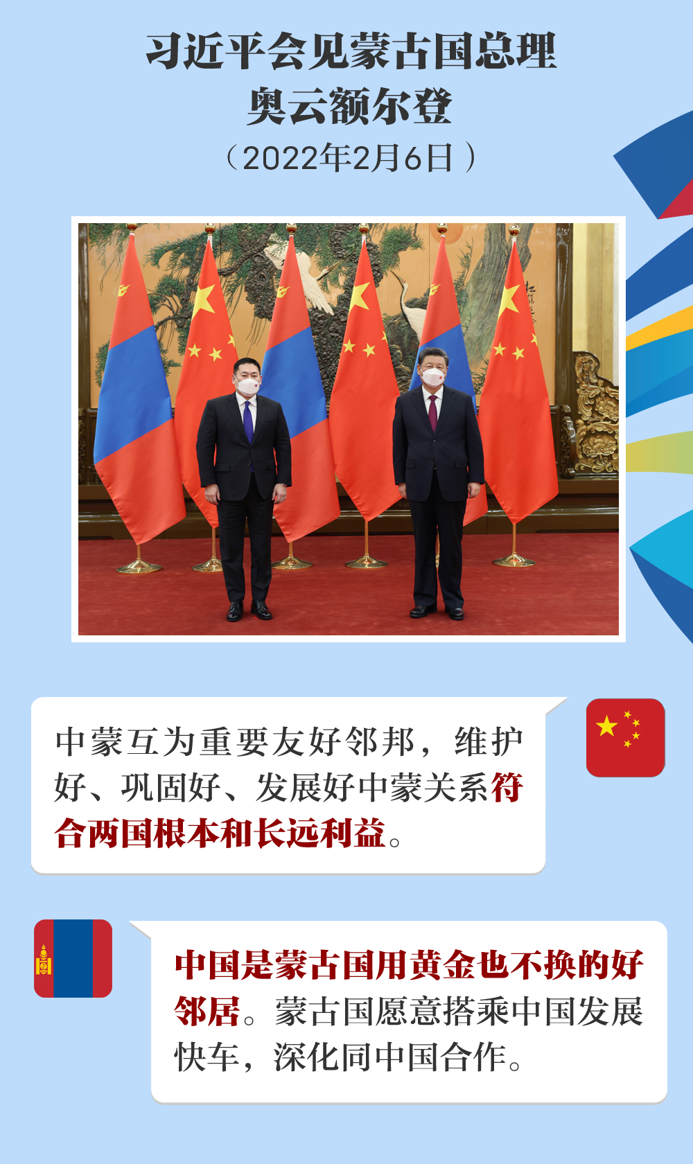 習近平會見蒙古國總理奧云額爾登(2022年2月6日)