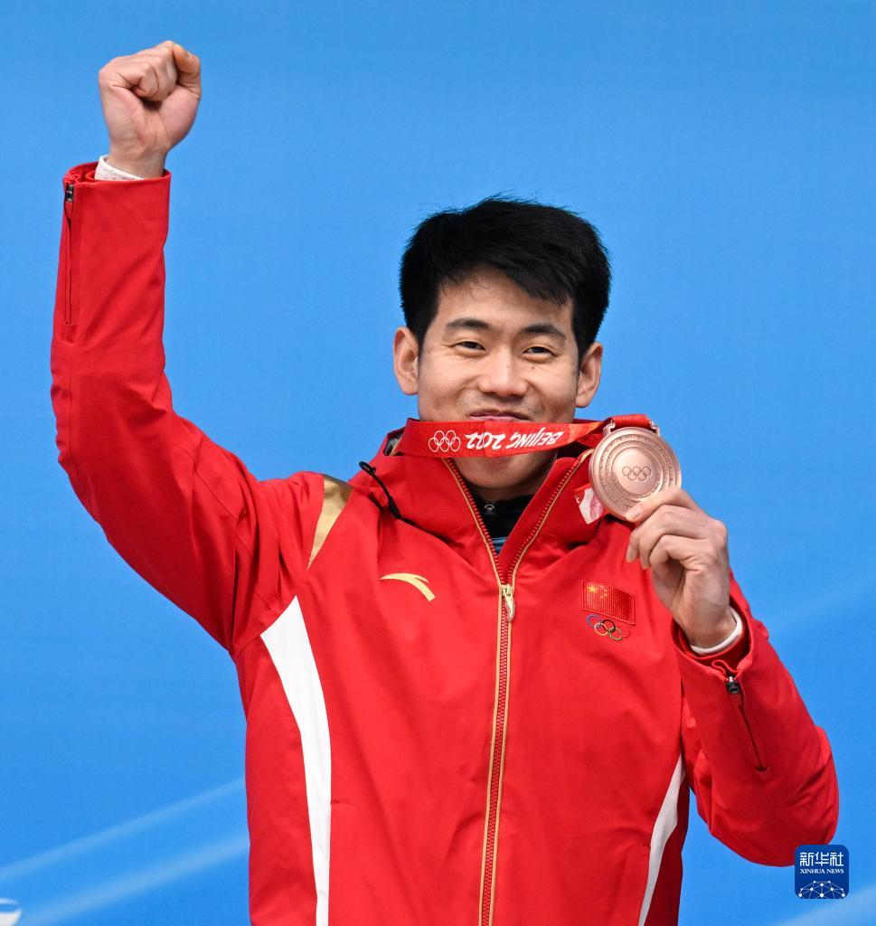 當日,在國家雪車雪橇中心舉行的北京2022年冬奧會男子鋼架雪車比賽中,中國選手閆文港奪得銅牌。