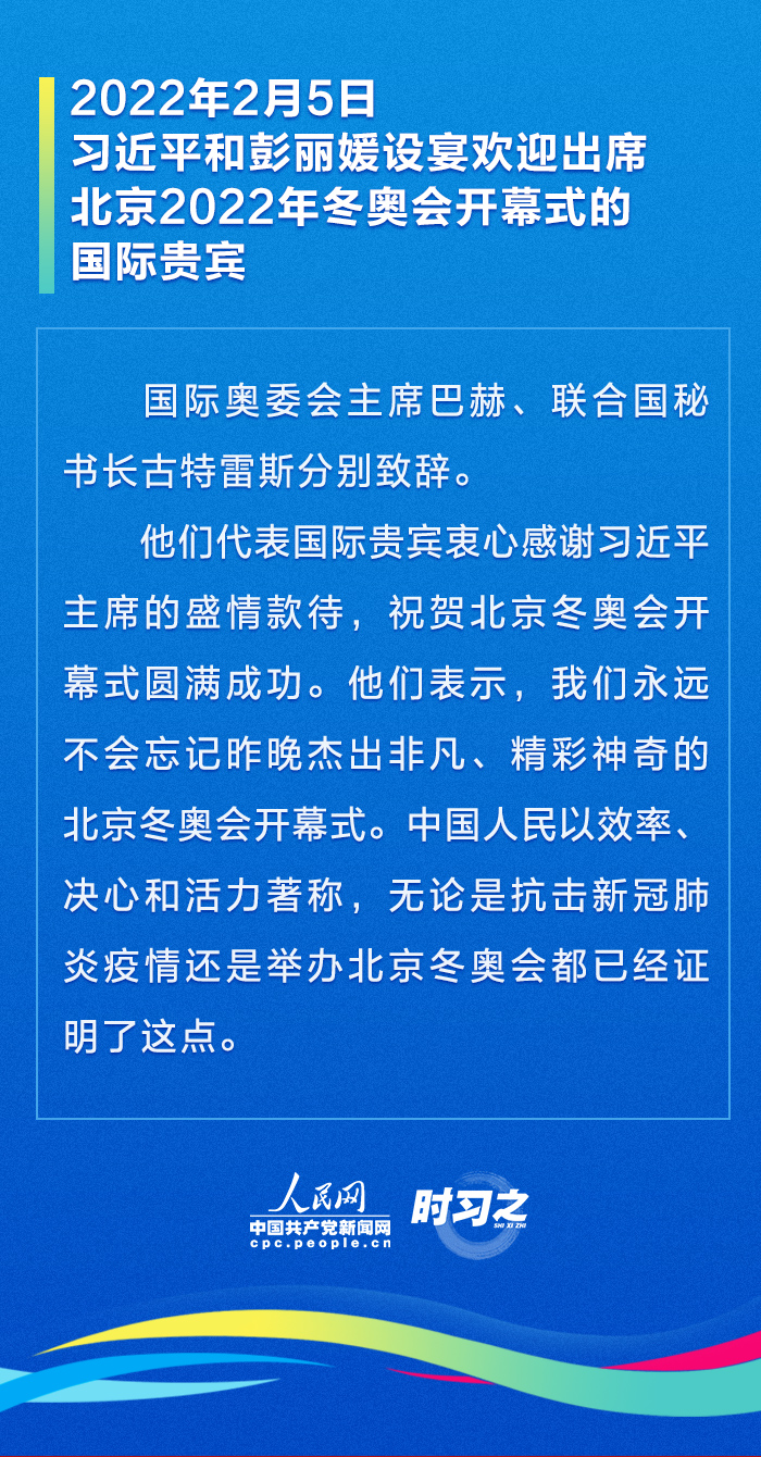 2月4日至6日,國家主席習近平同來華的外國元首、政府首腦、王室成員和國際組織負責人等國際貴賓一同出席北京2022年冬奧會開幕式,為他們舉行歡迎宴會,并開展系列雙邊會晤。中國展現出的開放自信、勇毅擔當,贏得了來賓的廣泛贊許。