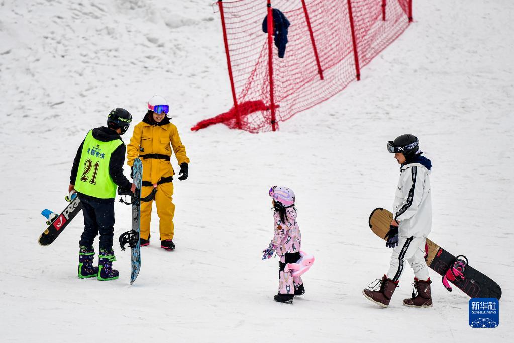 2021年2月15日,游客在位于四川省阿壩藏族羌族自治州的太子嶺滑雪場體驗冰雪運動。新華社記者張超群攝