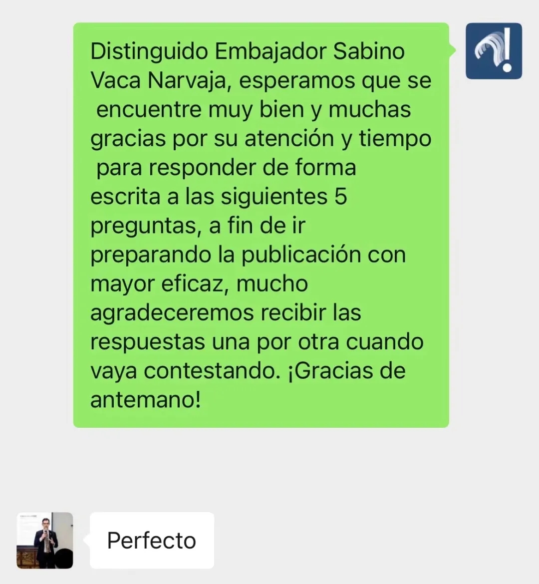 為了了解背后的故事,譚主給剛剛結束行程的牛望道大使發送了微信,希望進行書面采訪,他爽快答復——Perfecto(西班牙語,譯為“完美”)。