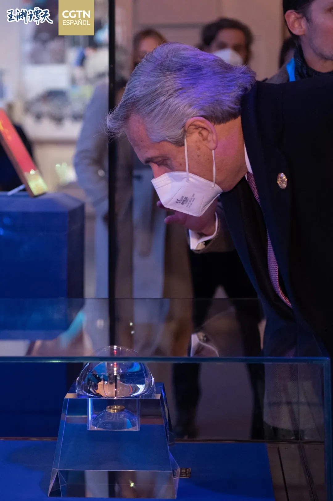 ▲阿根廷總統費爾南德斯參觀中國共產黨歷史展覽館月壤樣品