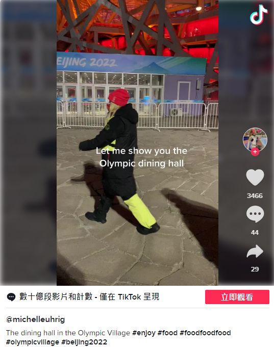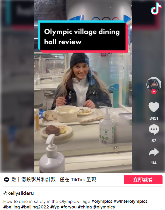愛沙尼亞滑雪運(yùn)動(dòng)員凱莉·西爾達(dá)魯分享了一段關(guān)于如何在冬奧村安全進(jìn)餐的視頻。事實(shí)上,她所說的安全與新冠疫情無關(guān),而是指不要吃得太多。