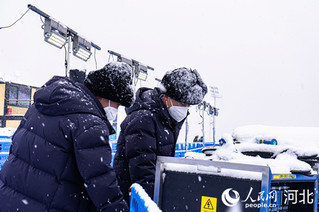 低溫大雪天氣可能造成設備無法正常工作,針對這樣的極端天氣,電力保障隊員要仔細巡查每個供電接口的狀態,以防在低溫大雪的天氣發生意外情況。同時,他們還采取設備上覆蓋防雪布、及時清雪、賽時進行不間斷巡視等措施,保證比賽供電保障萬無一失。