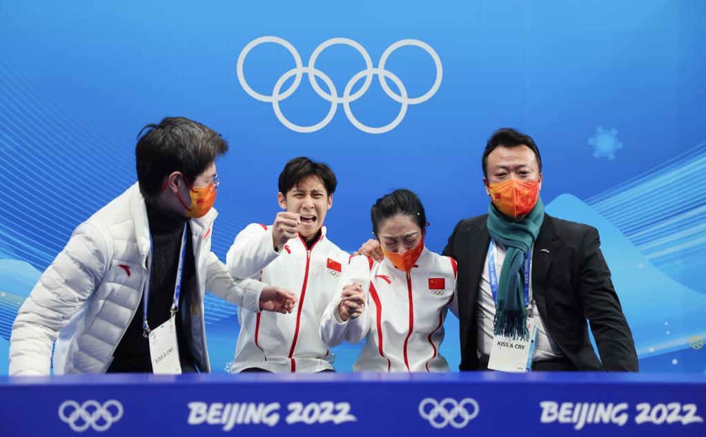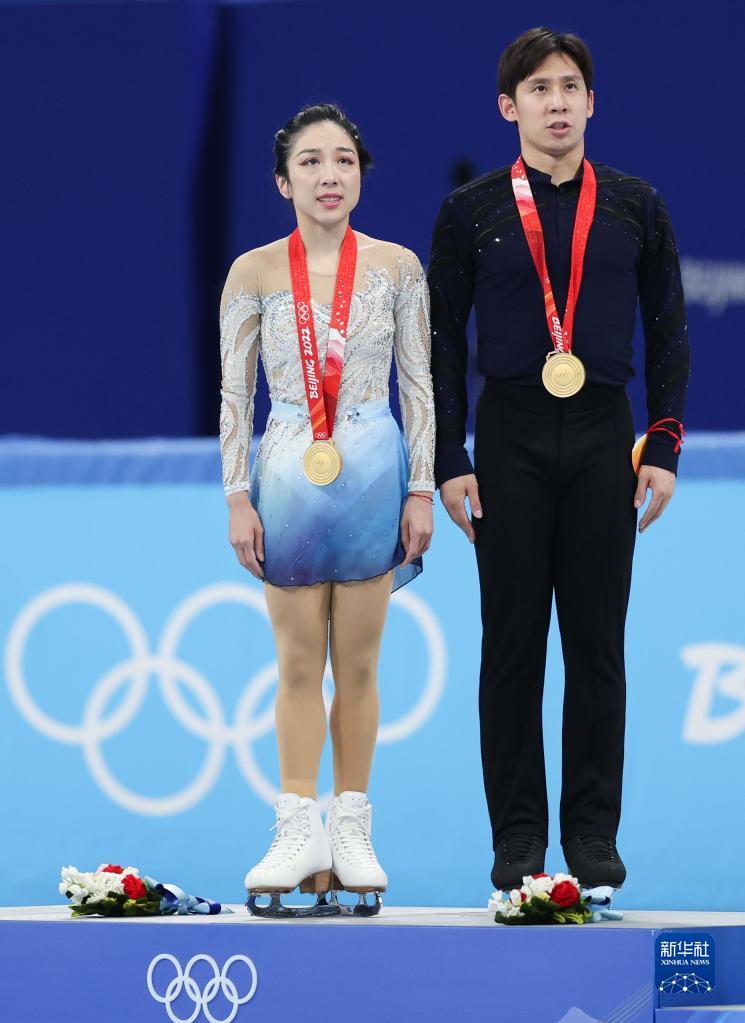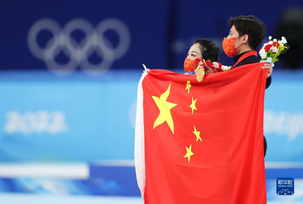 當日,北京2022年冬奧會花樣滑冰雙人滑自由滑比賽在首都體育館舉行,中國選手隋文靜/韓聰奪得雙人滑冠軍。