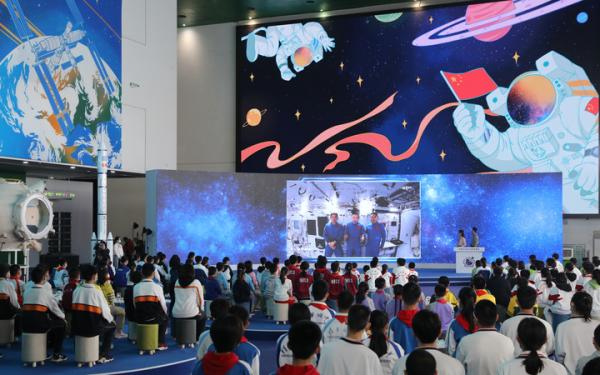 2021年12月9日,“天宮課堂”第一課開課,神舟十三號乘組航天員翟志剛、王亞平、葉光富在空間站進(jìn)行太空授課。這是學(xué)生們在北京中國科技館聽課。新華社記者 金立旺 攝