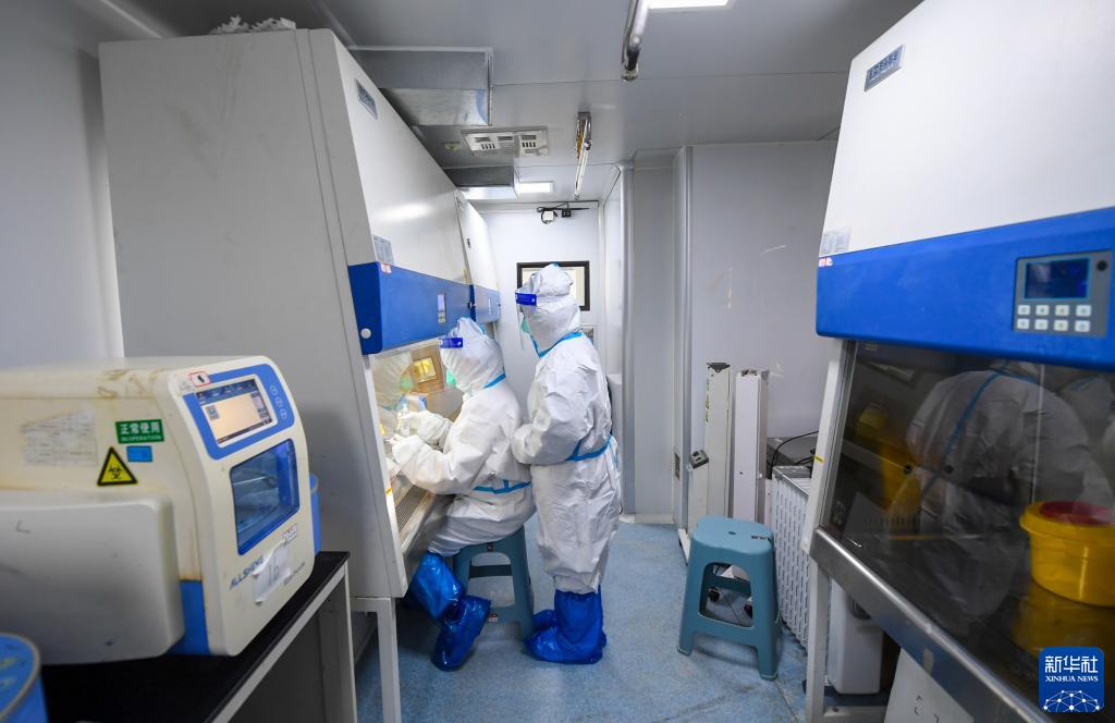 2月20日,工作人員在方艙實驗室內(nèi)工作。