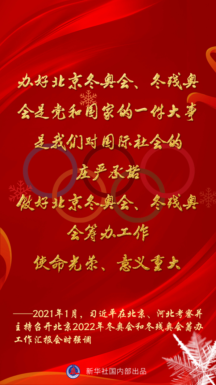 “辦好北京冬奧會、冬殘奧會,是中國對國際社會的莊嚴承諾。”習近平總書記說。