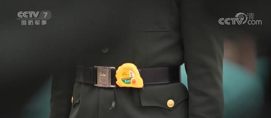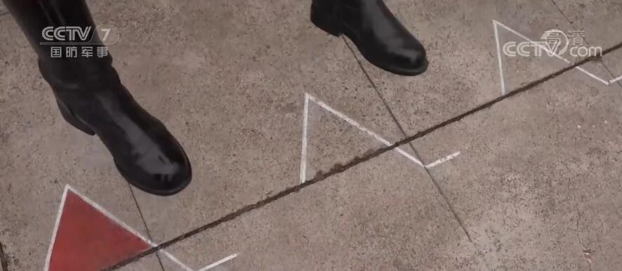 戰士們正在組裝的架子叫踢腿擺臂架,一高一低兩條白色標線專門用來訓練踢腿、擺臂兩個動作,卷尺測量每個動作的角度和距離,軍容鏡時刻檢查動作是否標準,三角標線用來規范立定動作時兩腳間的夾角。訓練場上隨處可見的測量工具,確保每一個動作都有標準的數據。